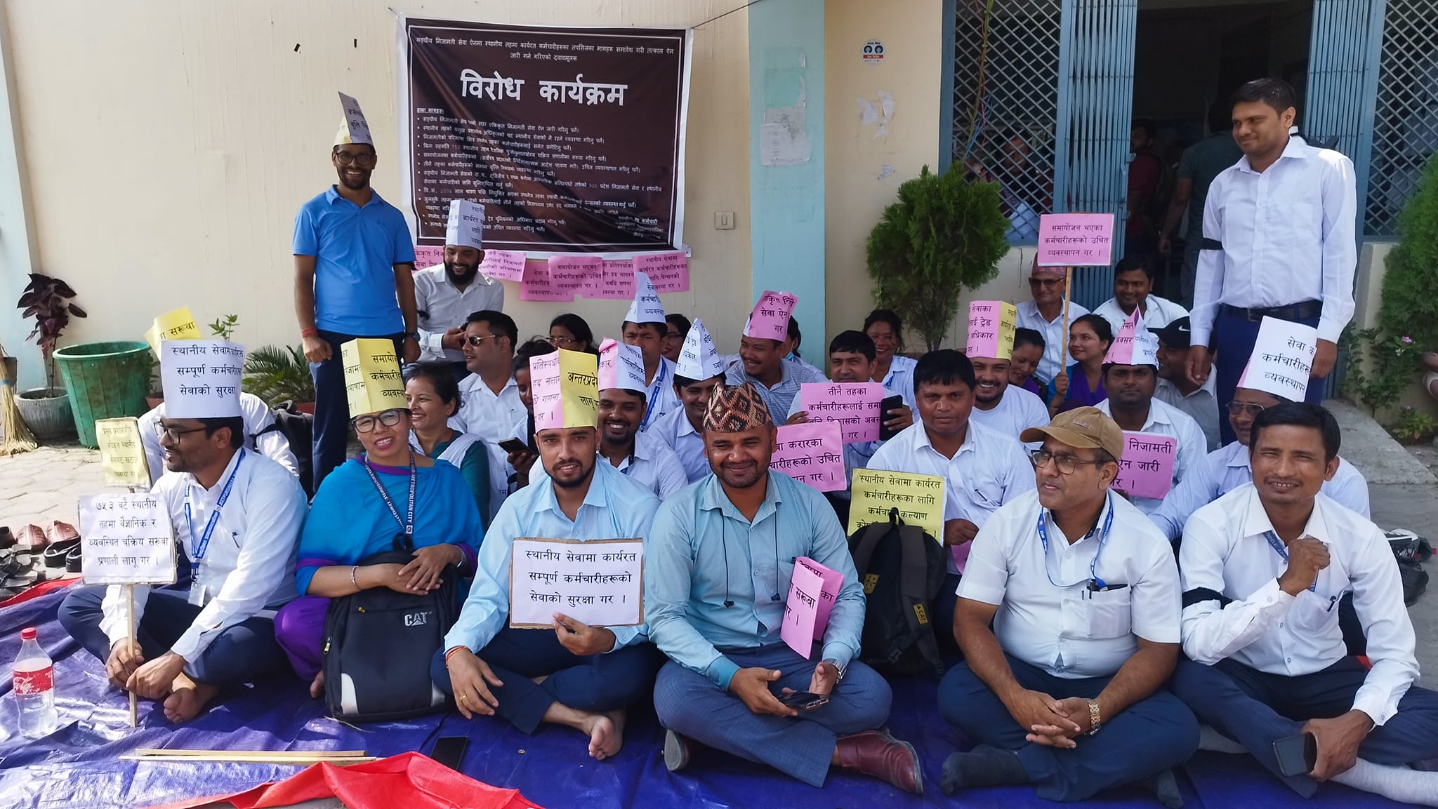 जितपुरसिमराका कर्मचारी कामकाज ठप्प पारेर धर्नामा
